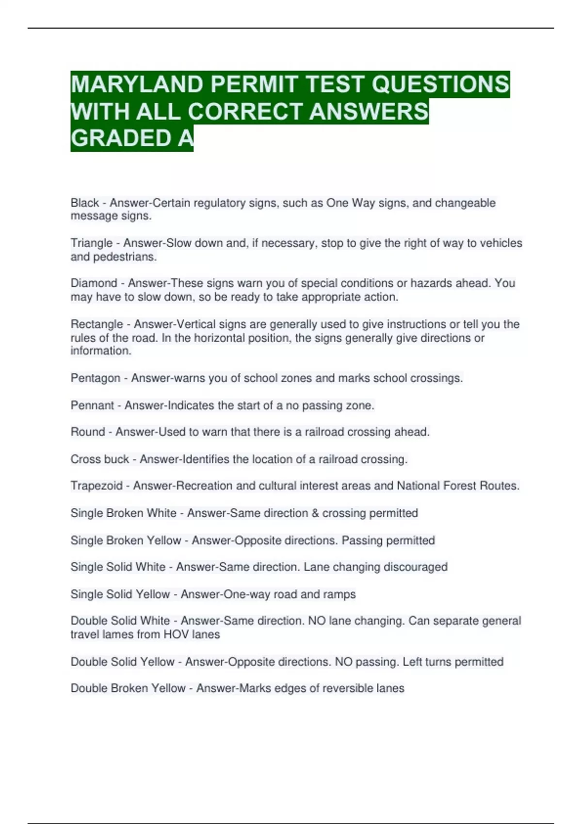 Diamond - Answer-These signs warn you of special conditions or hazards ahead. You