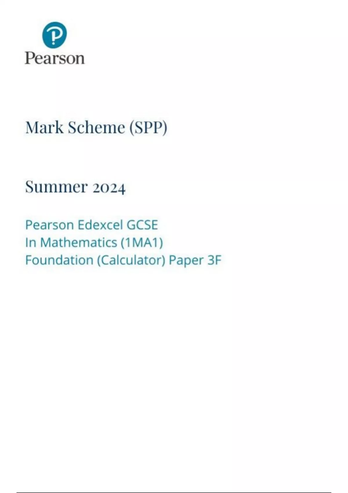 Pearson Edexcel GCSE In Mathematics (1MA1) Foundation (Calculator) Paper 3F mark scheme june 2024 1ma1-3f
