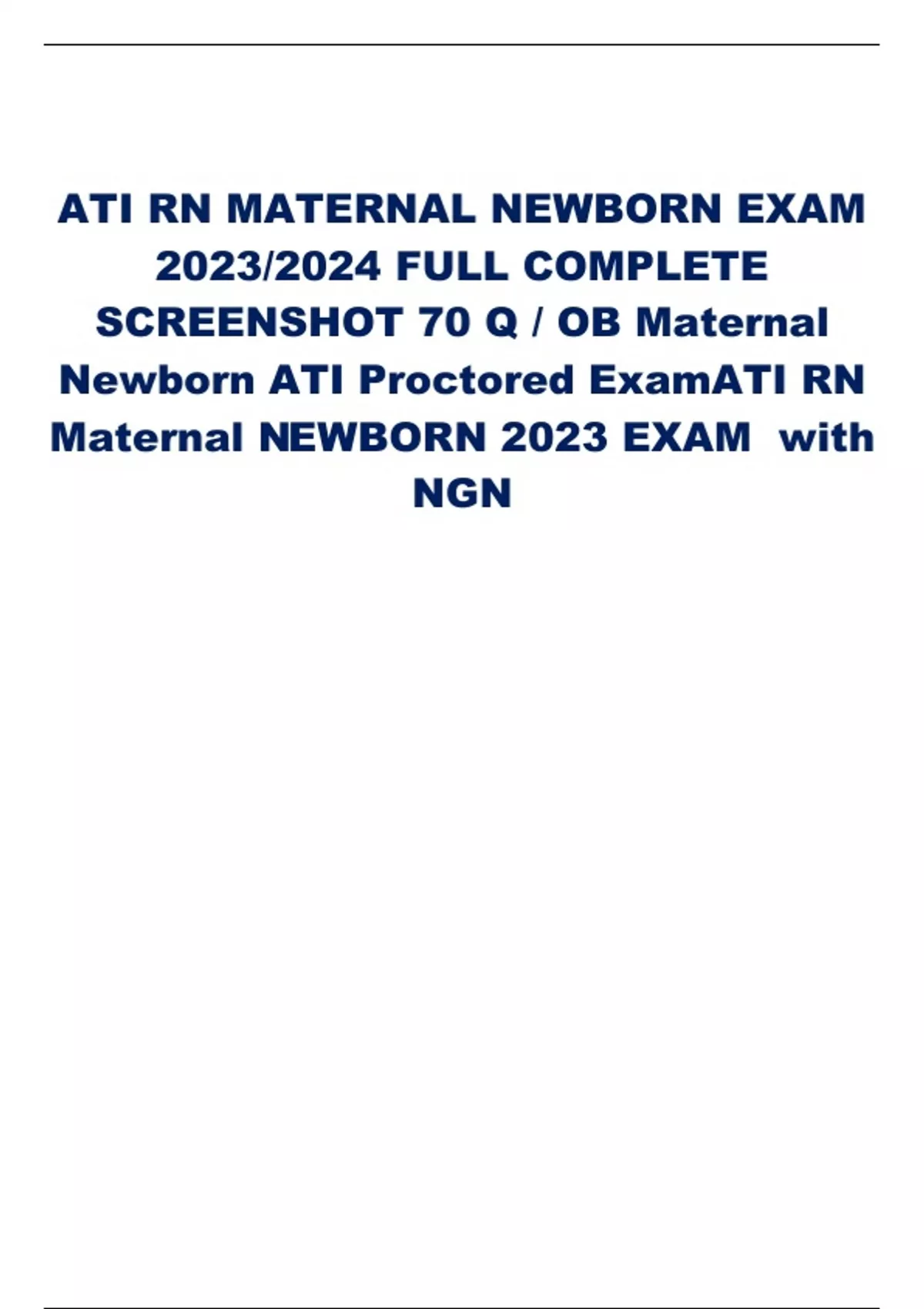 ATI RN MATERNAL NEWBORN EXAM 2023/2024 FULL COMPLETE SCREENSHOT 70 Q / OB Maternal Newborn ATI Proctored ExamATI RN Maternal N EWBORN 2023 EXAM with NGN Downloaded