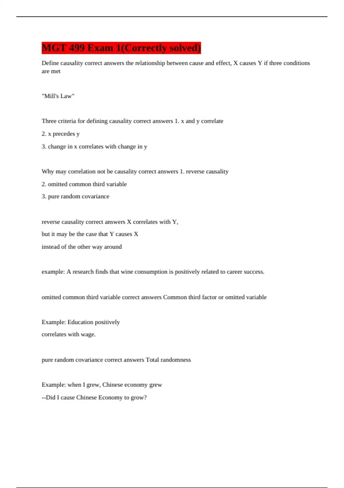 MGT 499 Exam 1(Correctly solved)