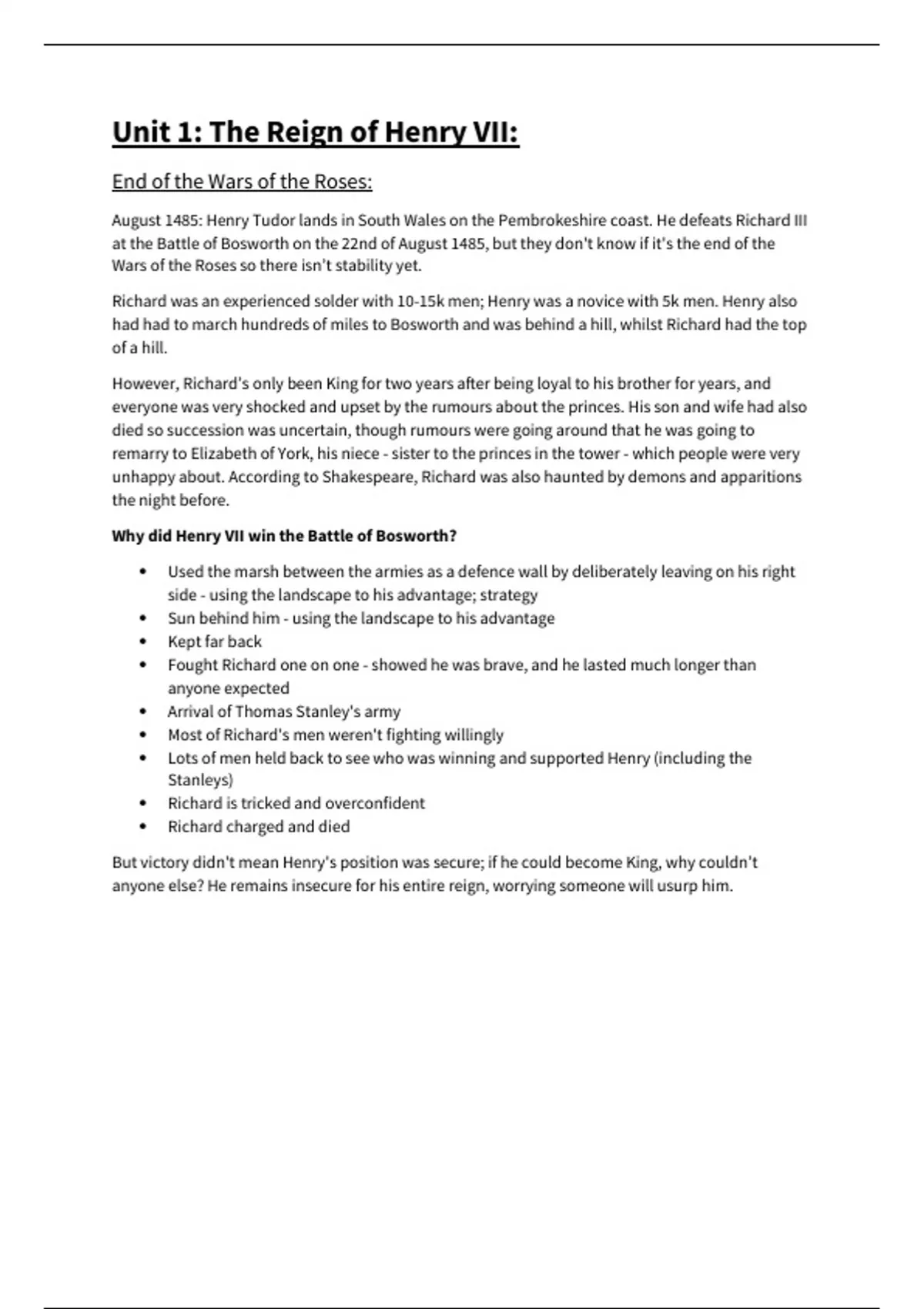 Why did Henry VII win the Battle of Bosworth?