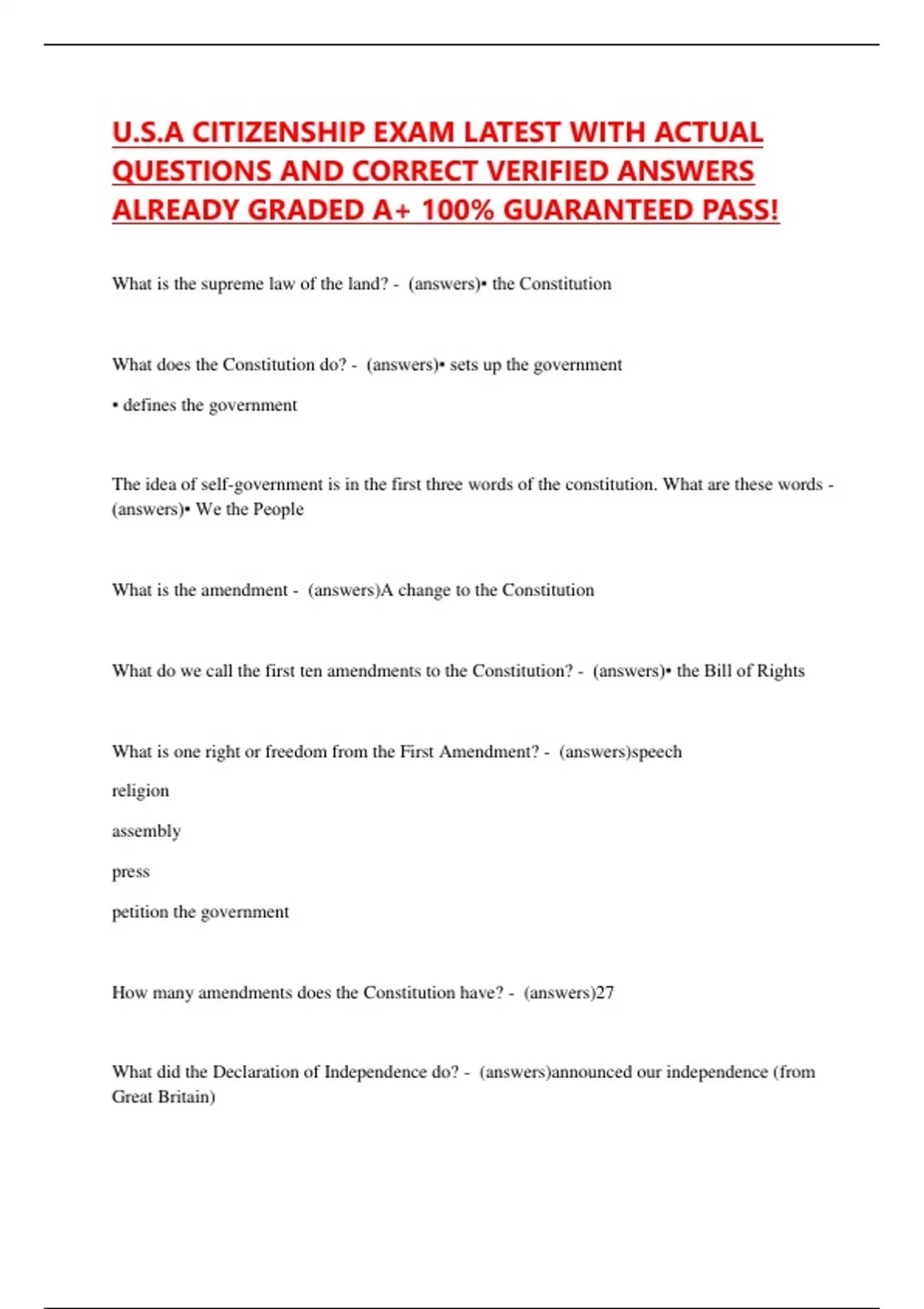 ALREADY GRADED A+ 100% GUARANTEED PASS!