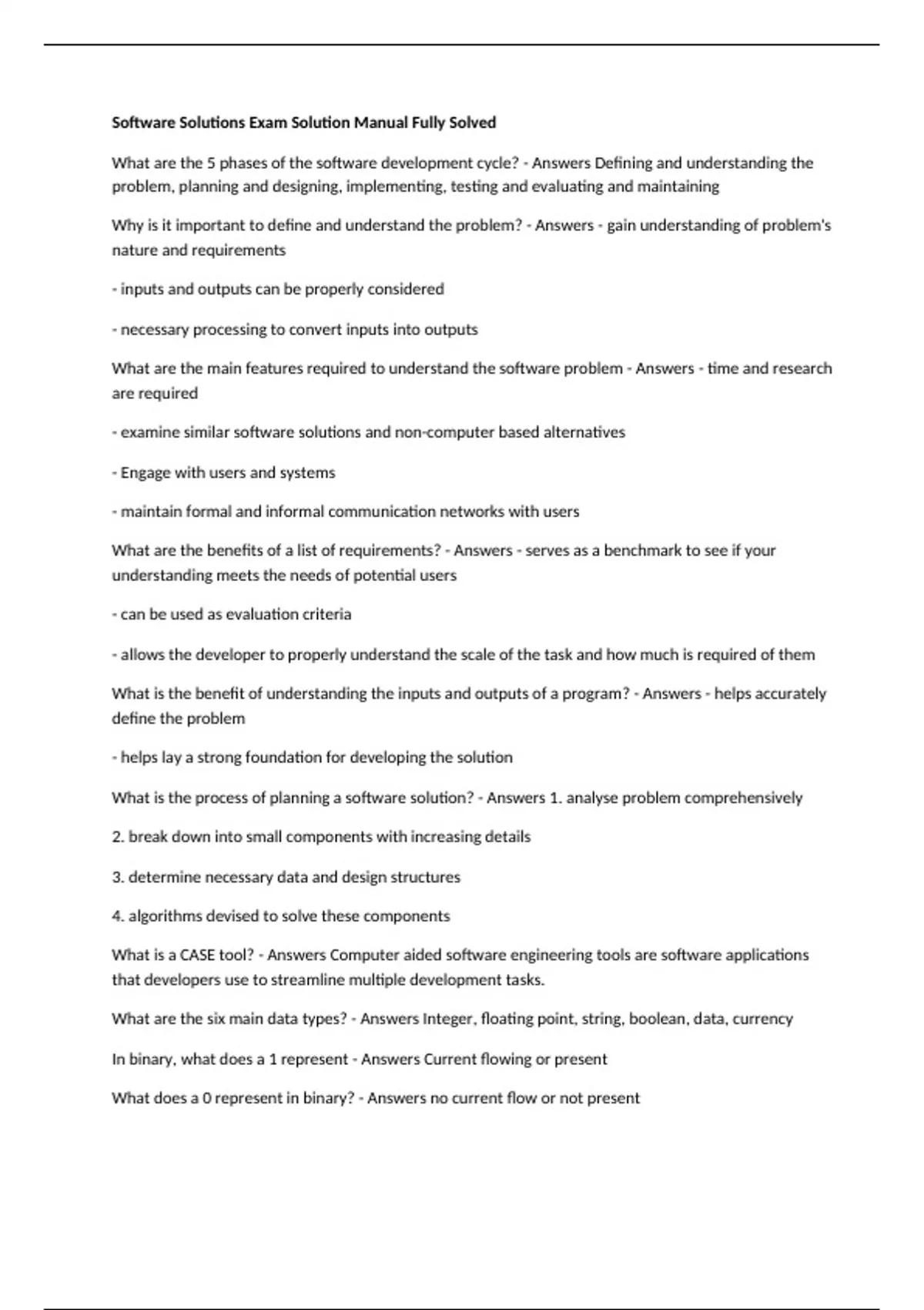 What is the process of planning a software solution? - Answers 1. analyse problem comprehensively