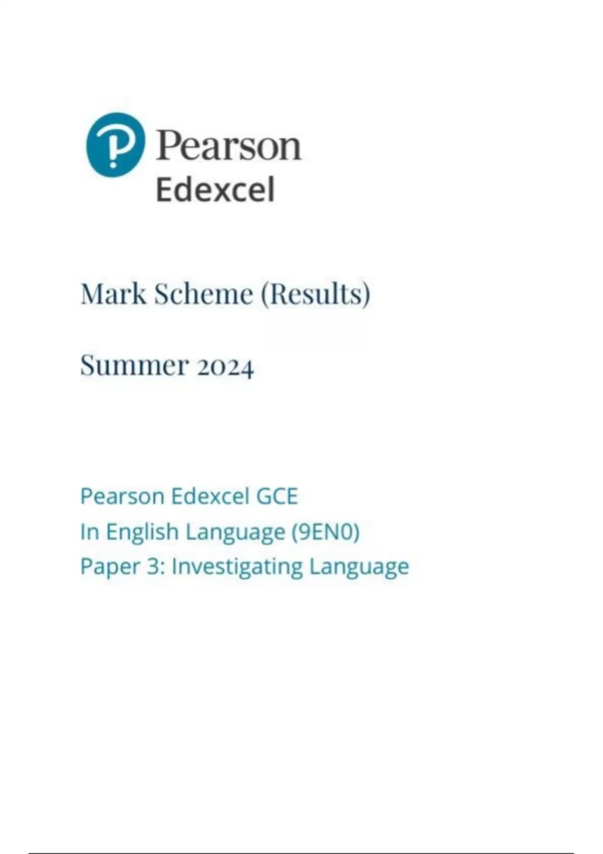 Pearson Edexcel GCE In English Language (9EN0) Paper 3: Investigating Language mark scheme june 2024 9en0-03