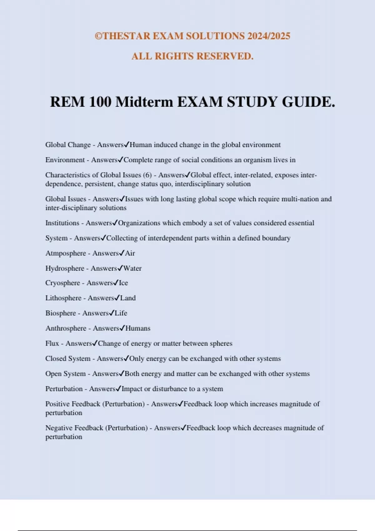 REM 100 Midterm EXAM STUDY GUIDE.