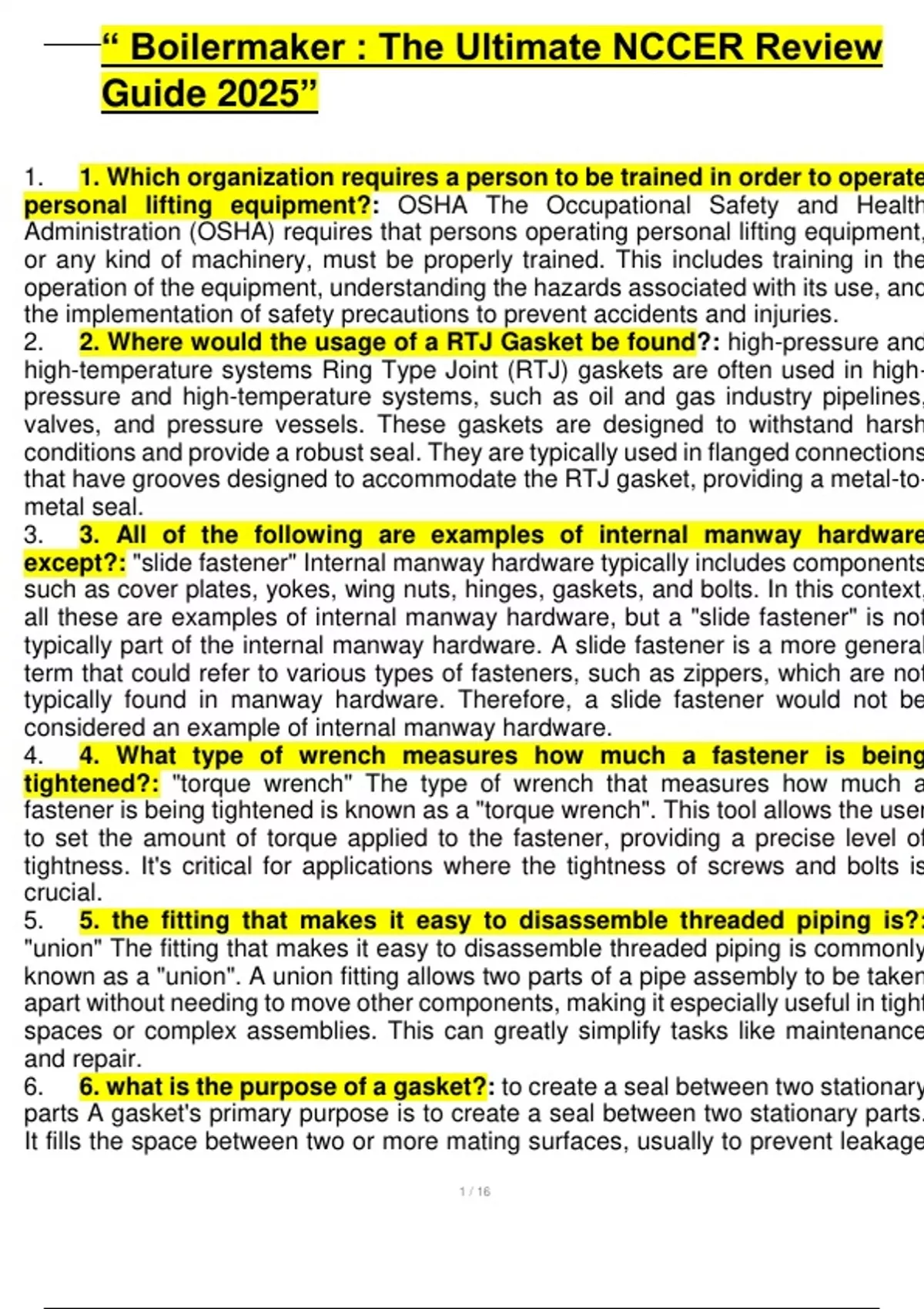 2. 2. Where would the usage of a RTJ Gasket be found?: high-pressure and