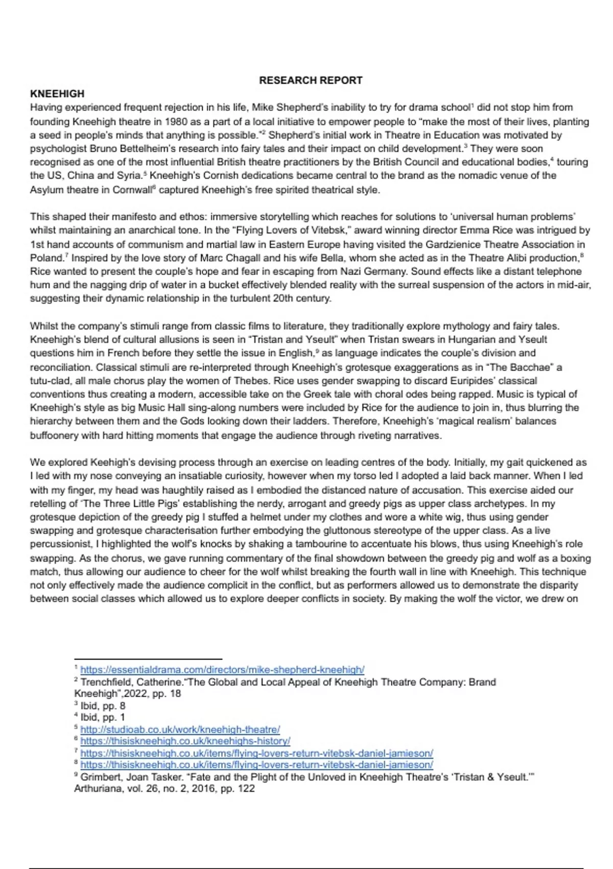 match, thus allowing our audience to cheer for the wolf whilst breaking the fourth wall in line with Kneehigh. This technique