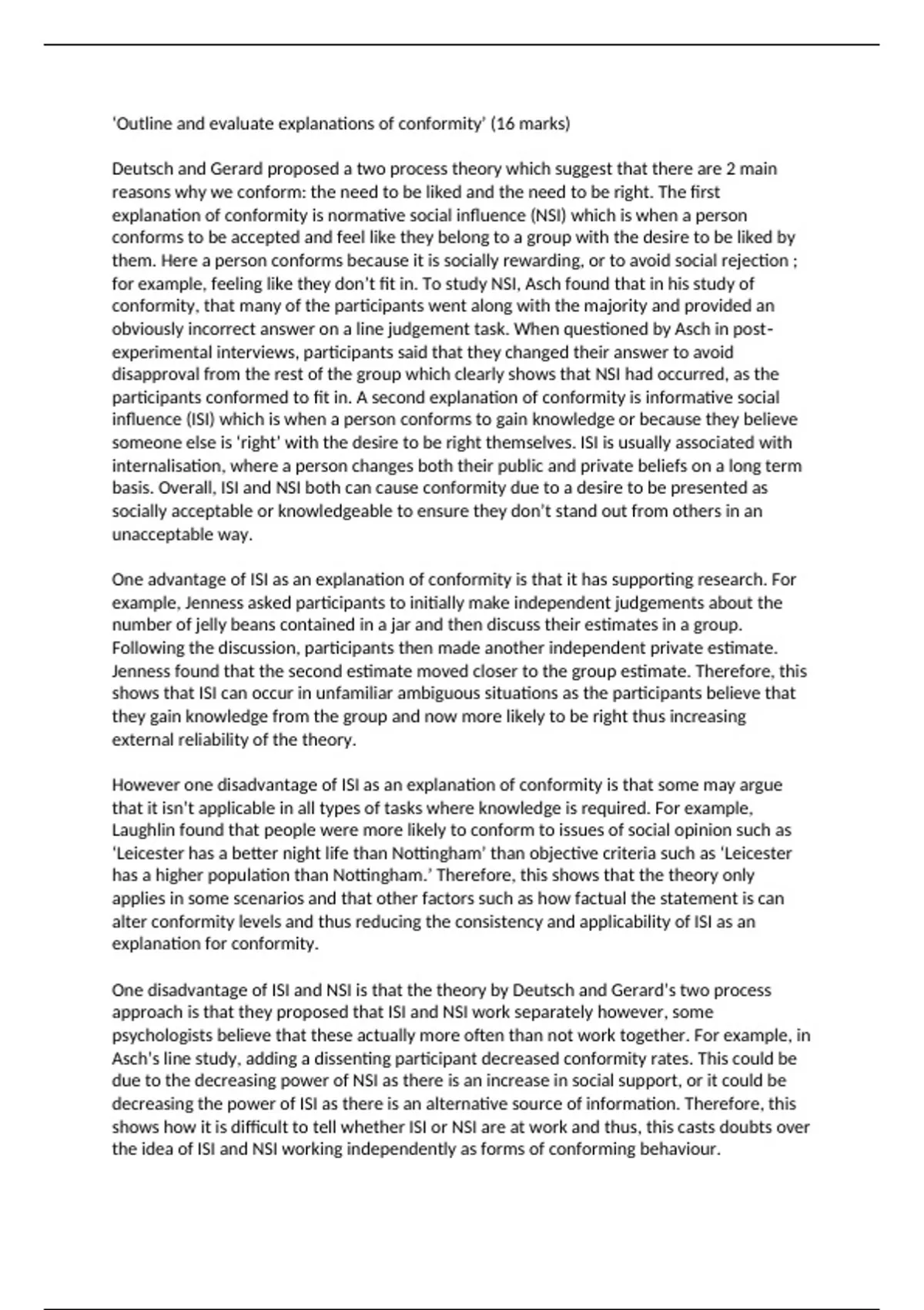 , ‘Outline and evaluate research into conformity’ (16 marks)