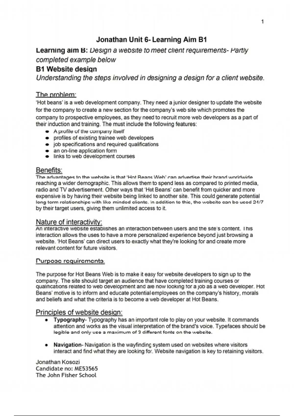 Learning aim B: Design a website to meet client requirements- Partly completed example below B1 Website design Understanding the steps involved in designing a design for a client website.