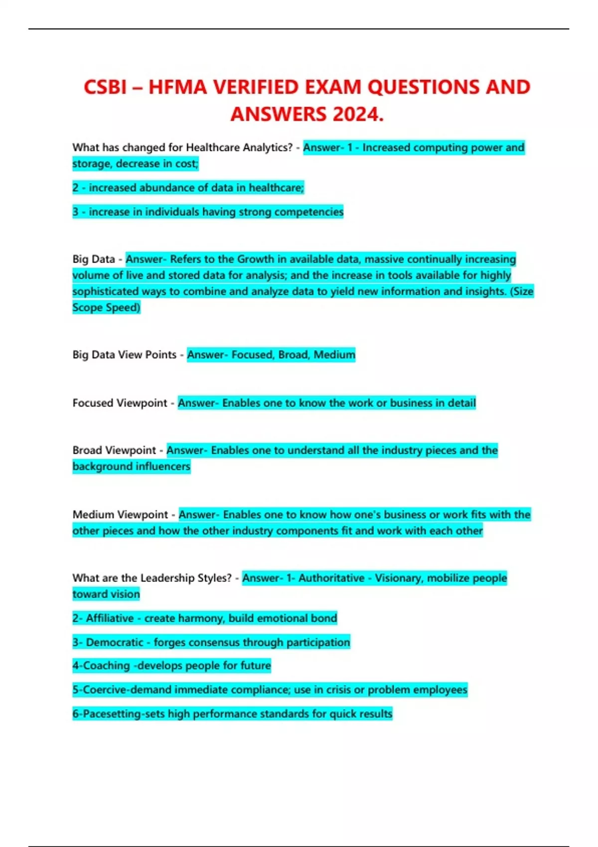 CSBI – HFMA VERIFIED EXAM QUESTIONS AND ANSWERS 2024.