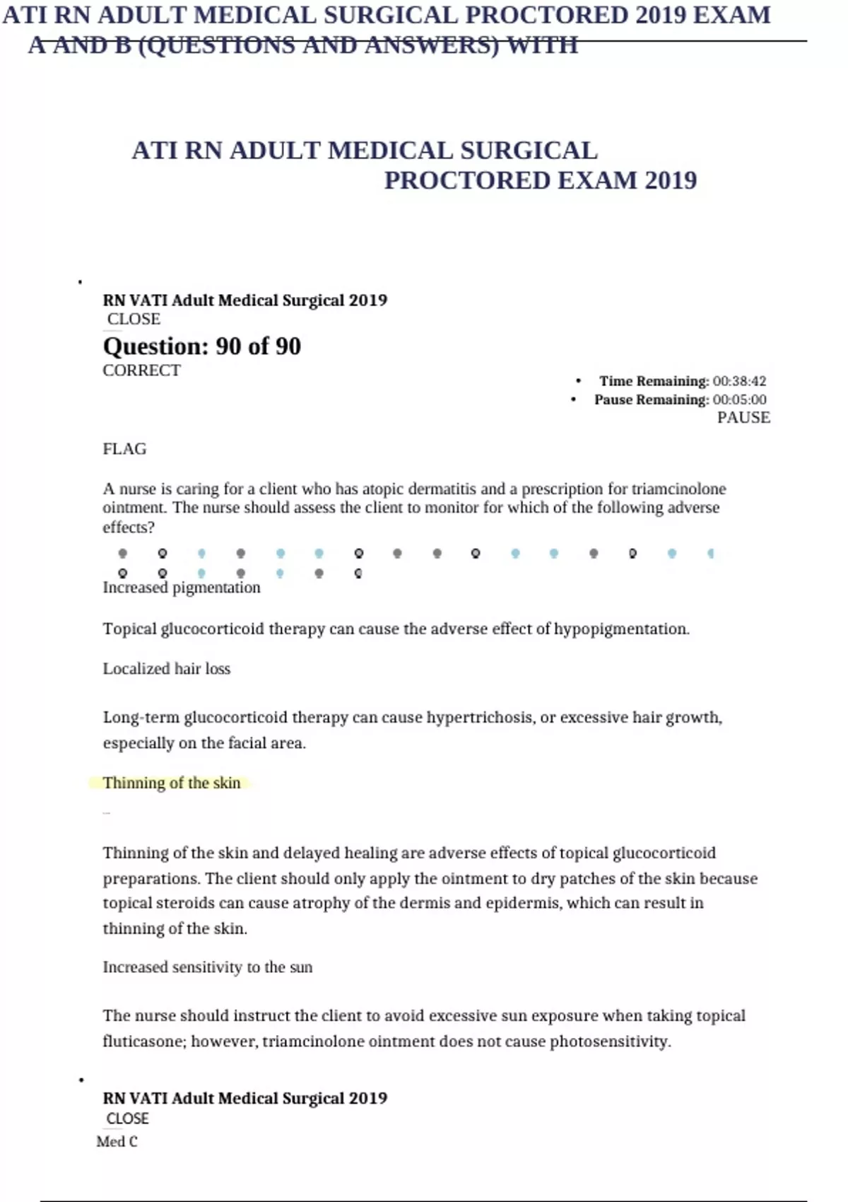 ,ATI RN ADULT MEDICAL SURGICAL PROCTORED 2019 EXAM