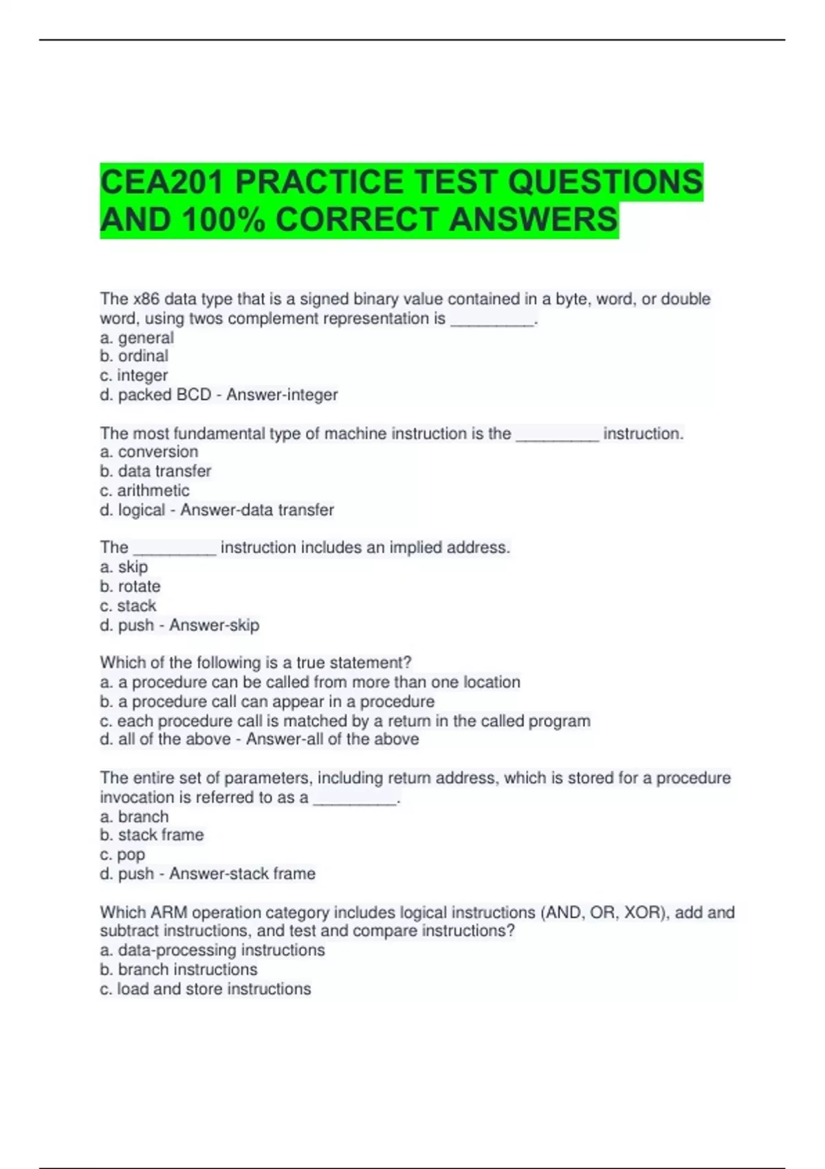 AND 100% CORRECT ANSWERS