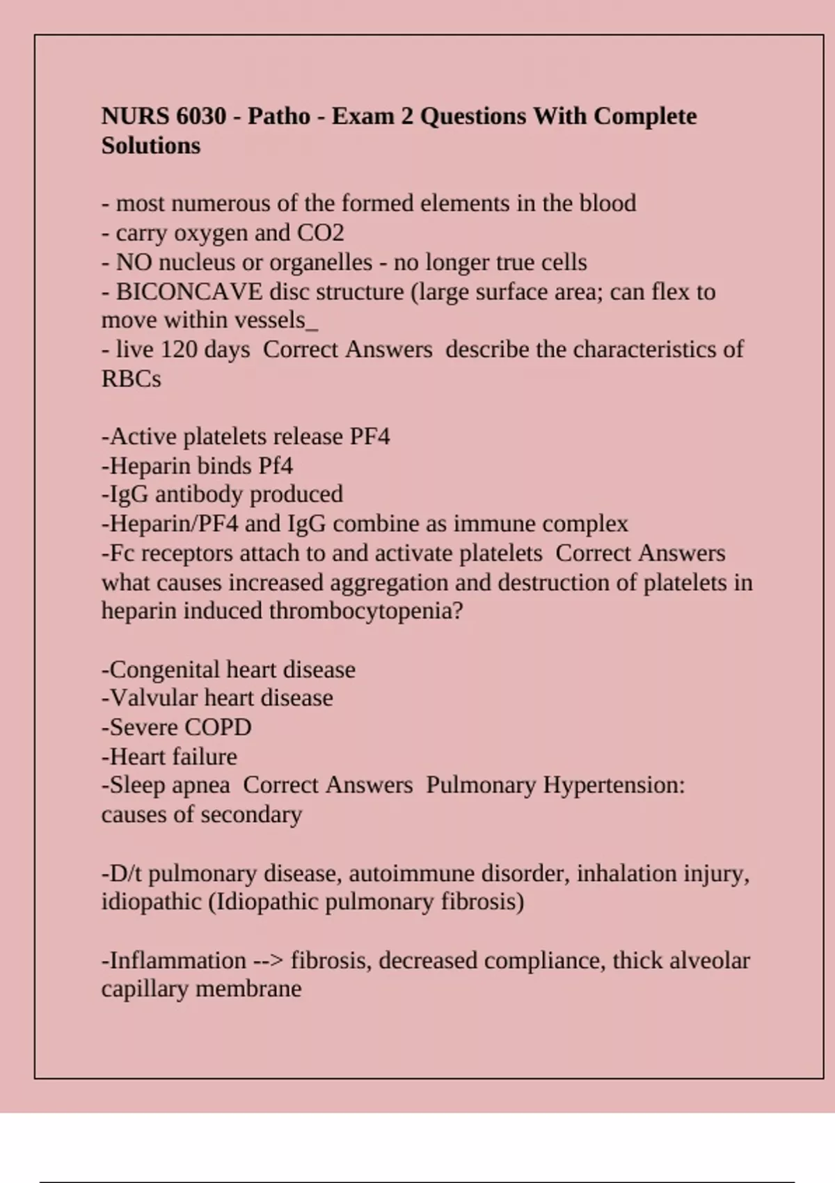 ,-Dyspnea on exertion Correct Answers Pulmonary fibrosis;