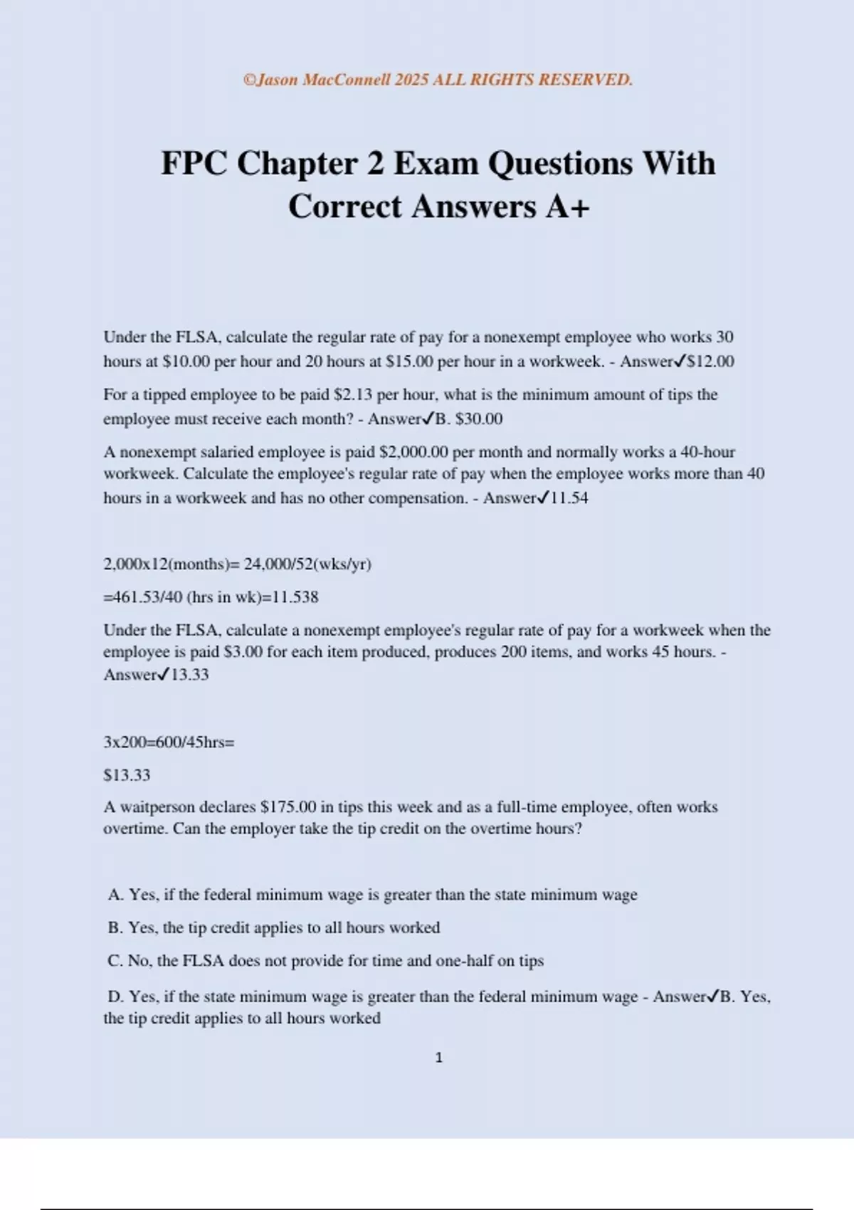 hours in a workweek and has no other compensation. - Answer✔11.54