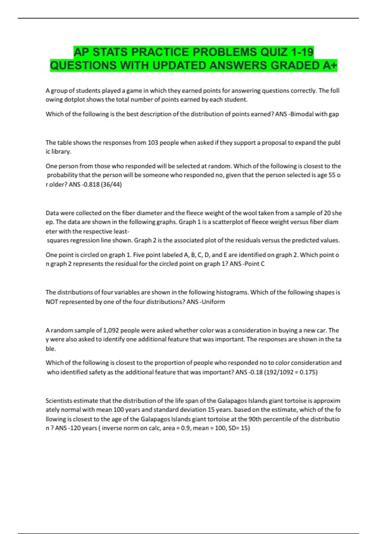 QUESTIONS WITH UPDATED ANSWERS GRADED A+