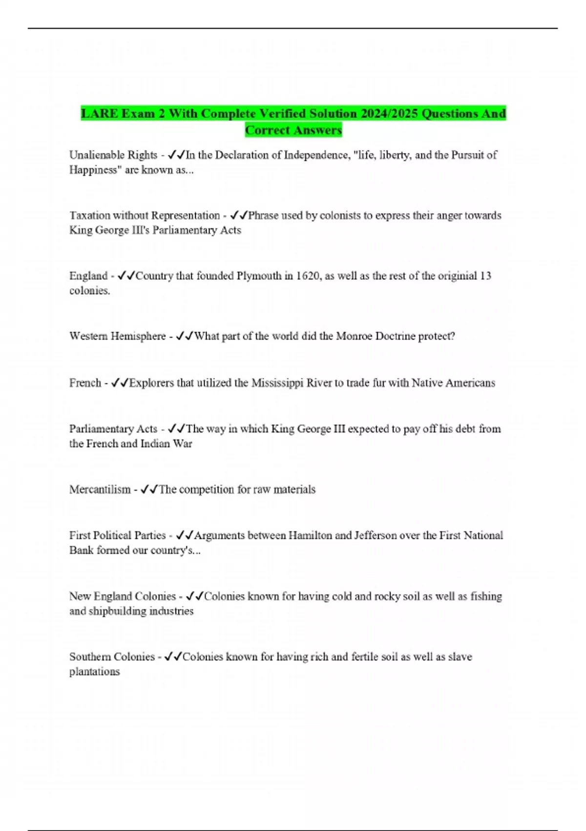 LARE Exam 2 With Complete Verified Solution 2024/2025 Questions And Correct Answers