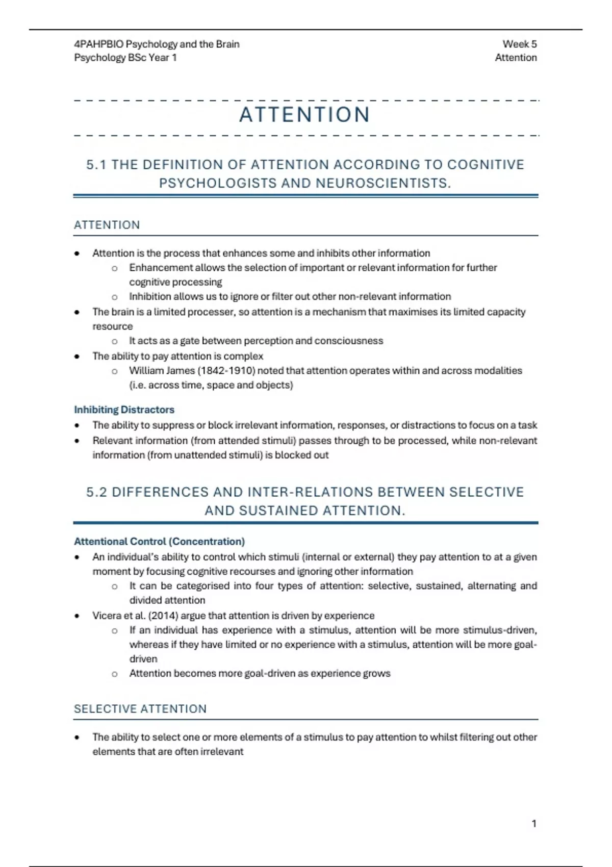Psychology BSc Year 1 Attention