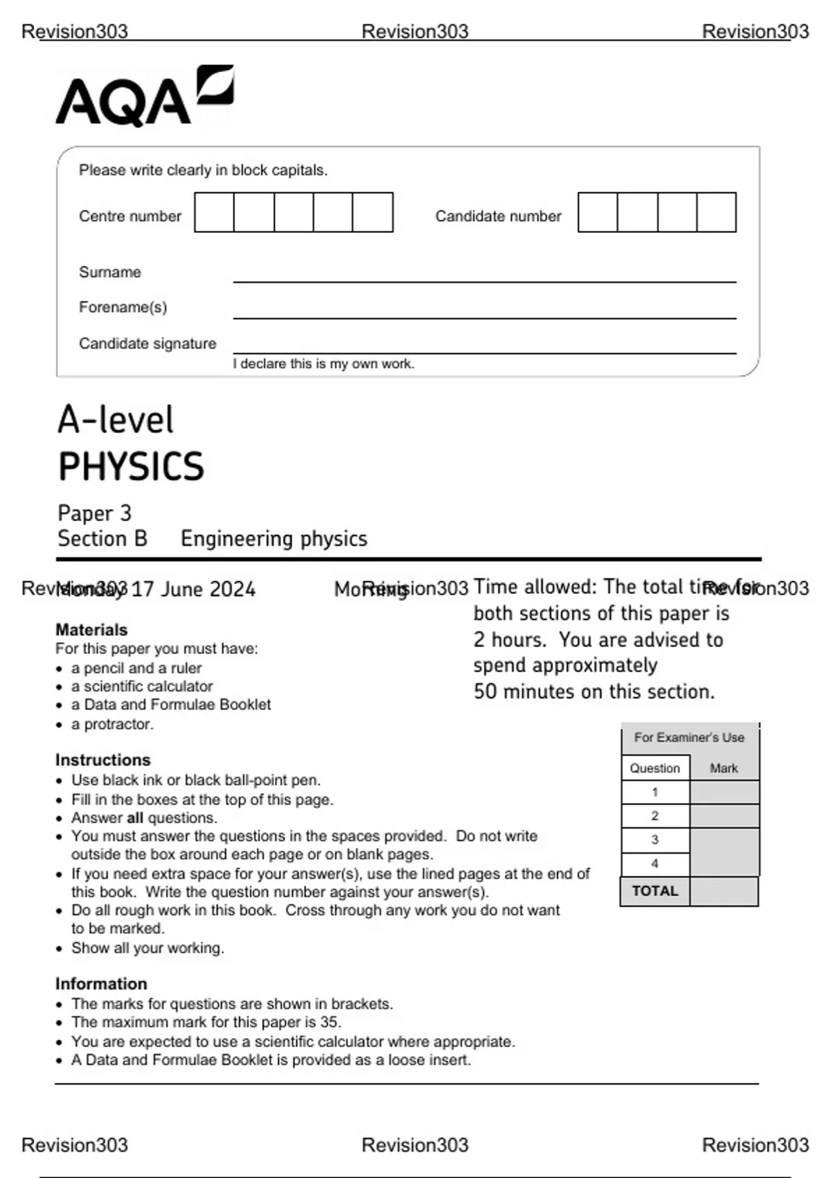 • The maximum mark for this paper is 35.