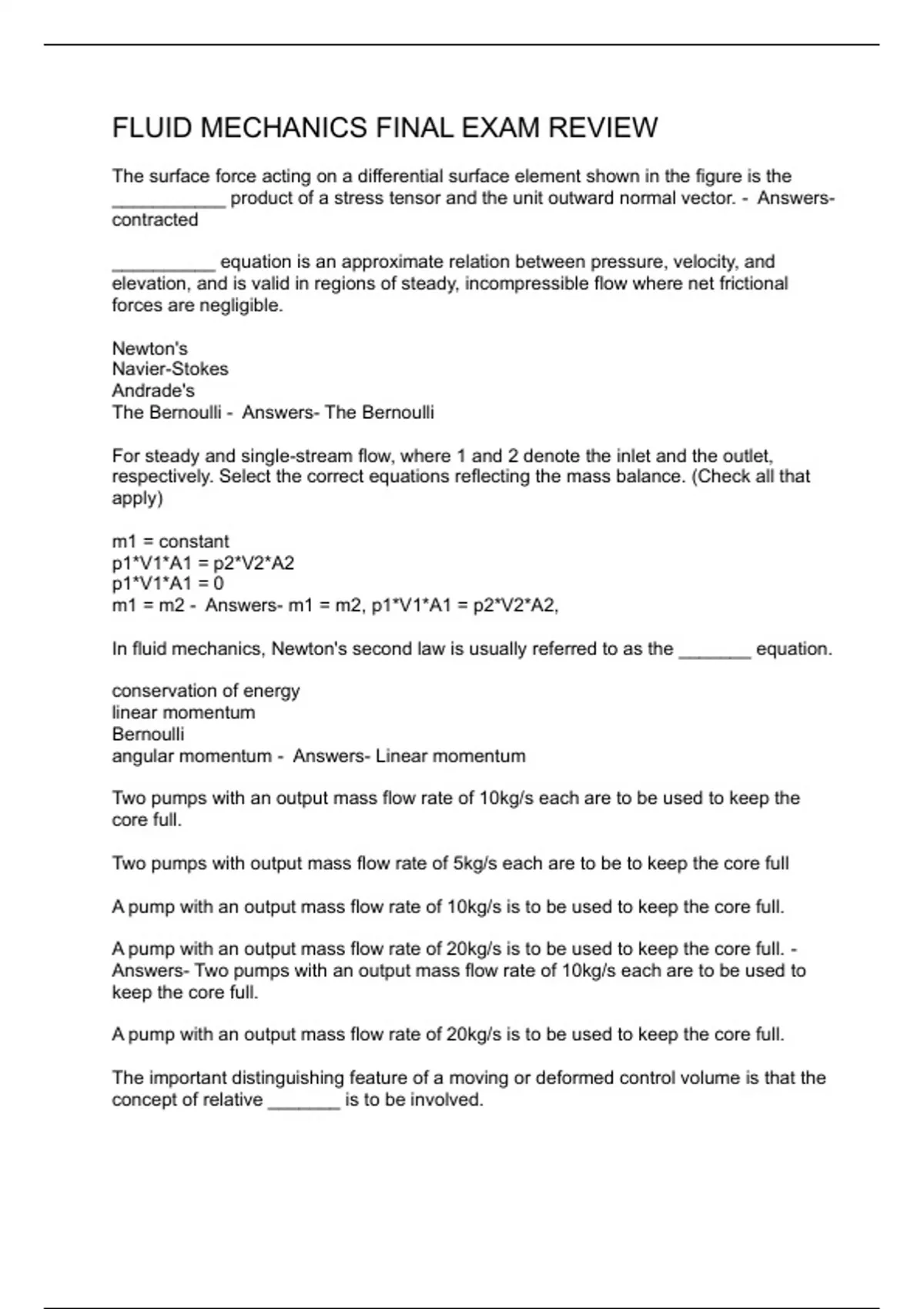 FLUID MECHANICS FINAL EXAM REVIEW