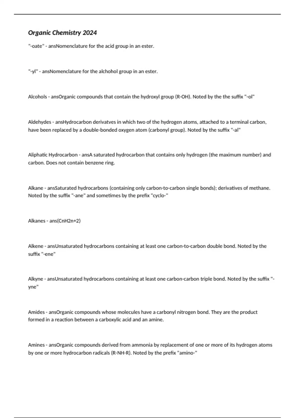 Aldehydes - ansHydrocarbon derivatves in which two of the hydrogen atoms, attached to a terminal carbon,