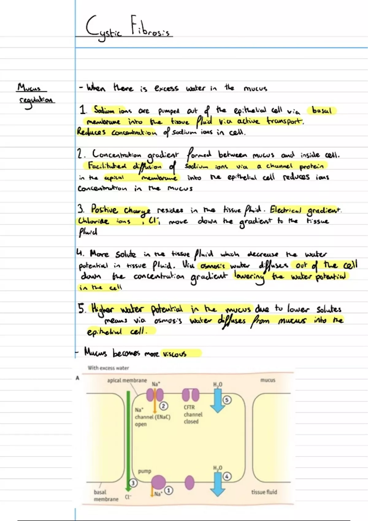 Edexcel Biology Topic 2 Cystic Fibrosis, Mucus Production, CFTR protein.