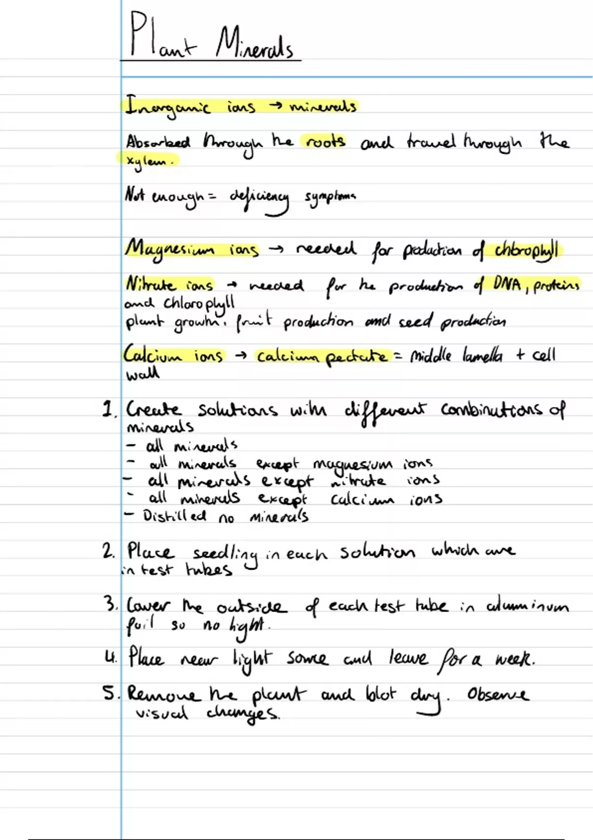 Edexcel Biology Topic 4 Plant Minerals, Nitrates, Magnesium, Calcium.