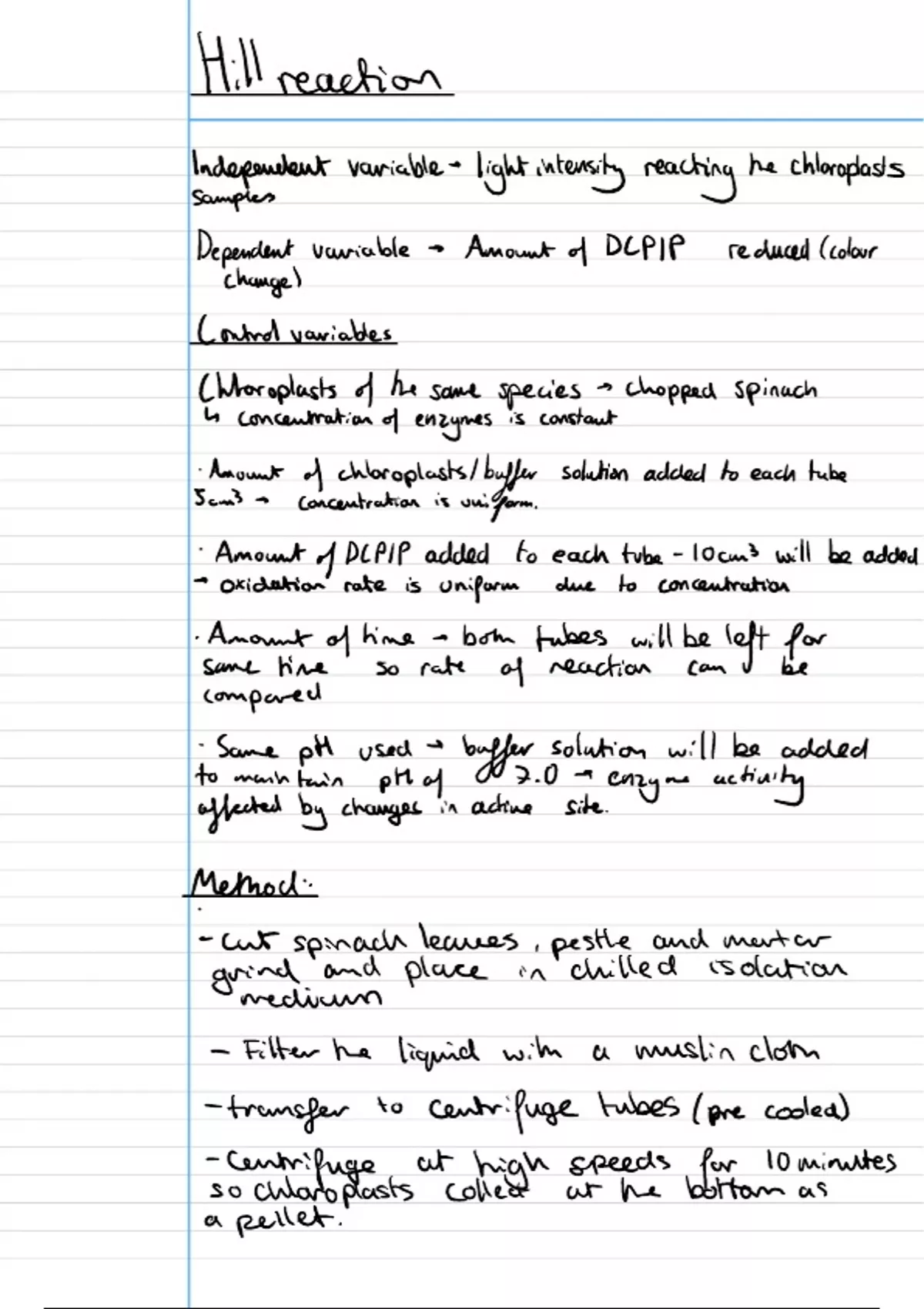 Edexcel Biology Topic 5 Hill Reaction, Practical