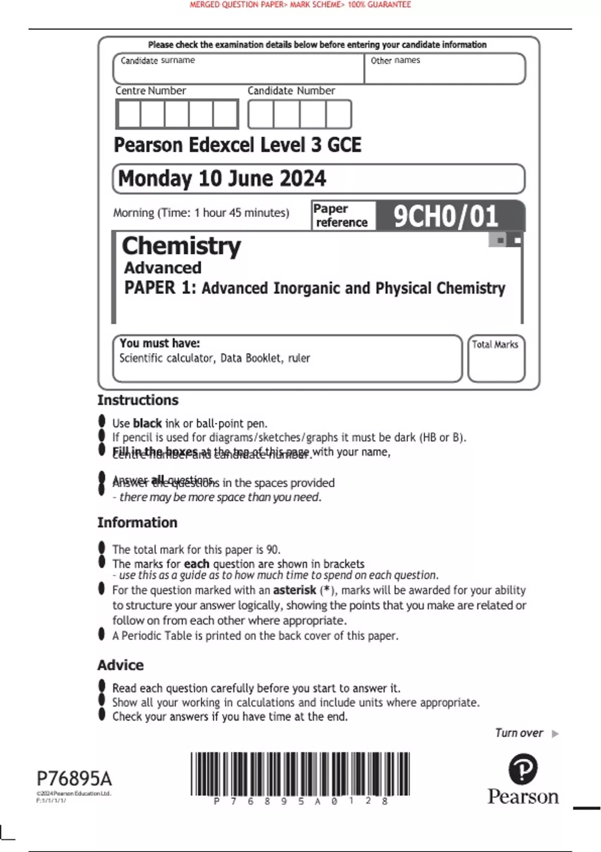 • The total mark for this paper is 90.