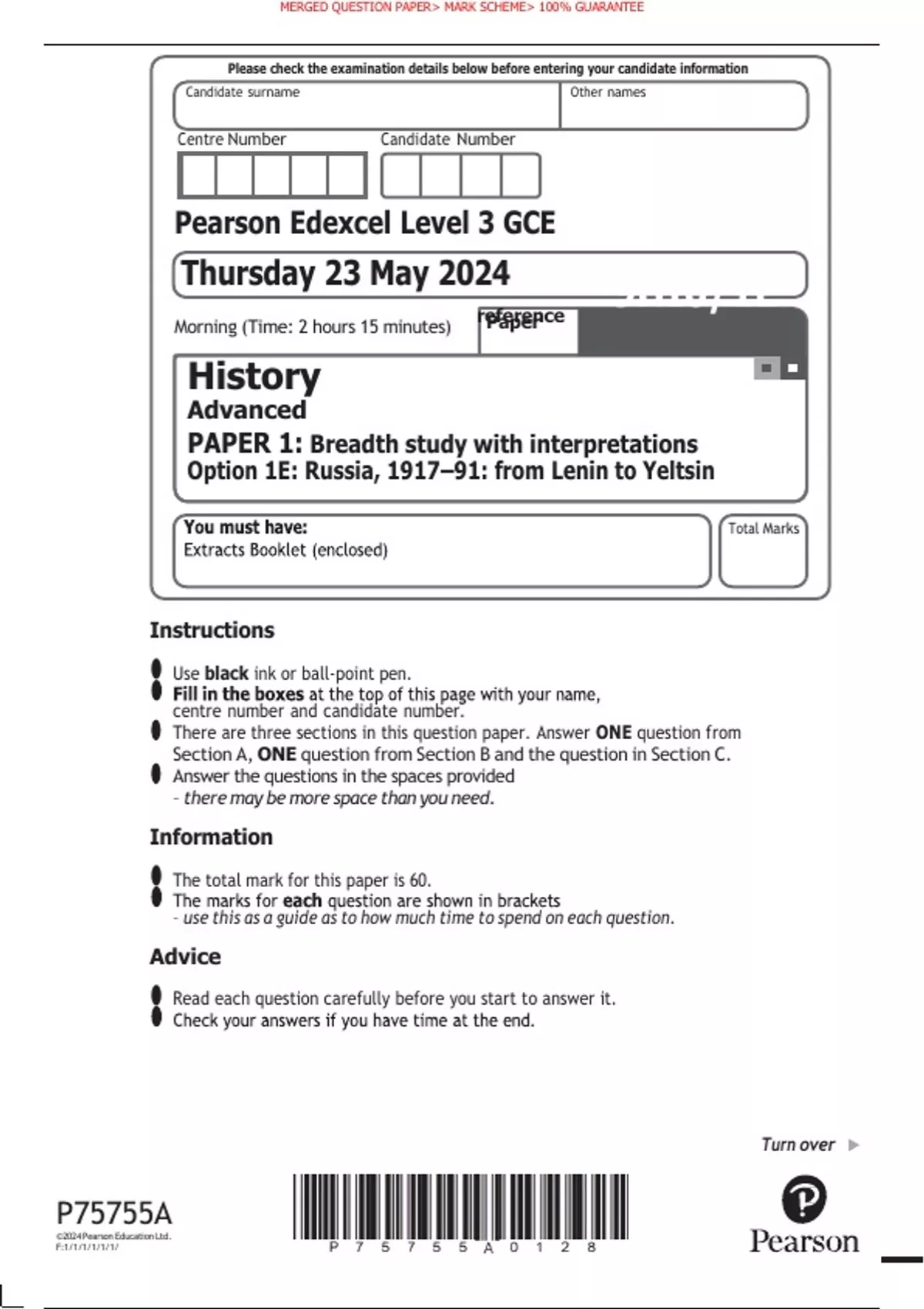 • The total mark for this paper is 60.