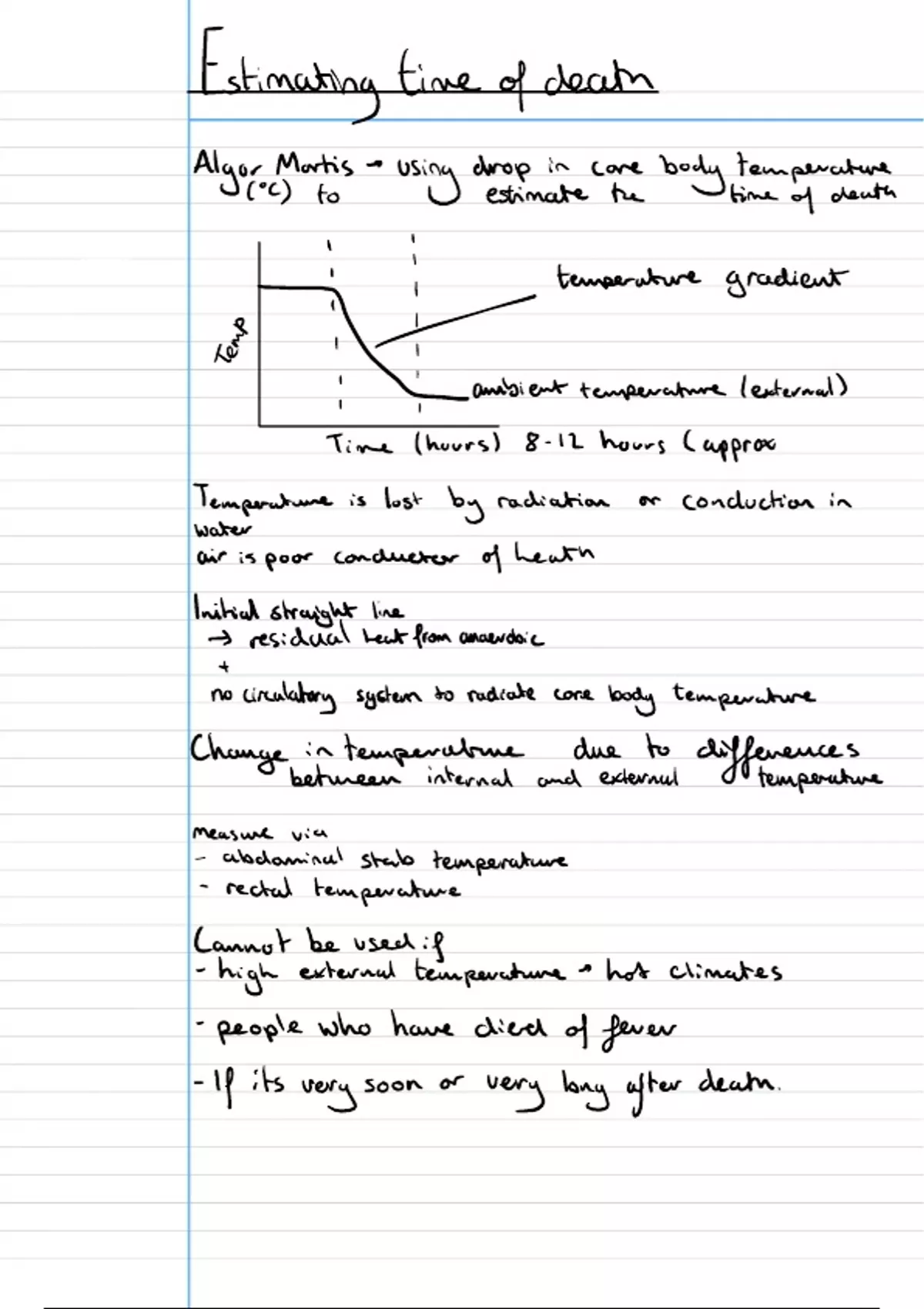 Edexcel Biology Topic 6 Estimating time of death, forensics, algor mortis. rigor mortis, etymology.