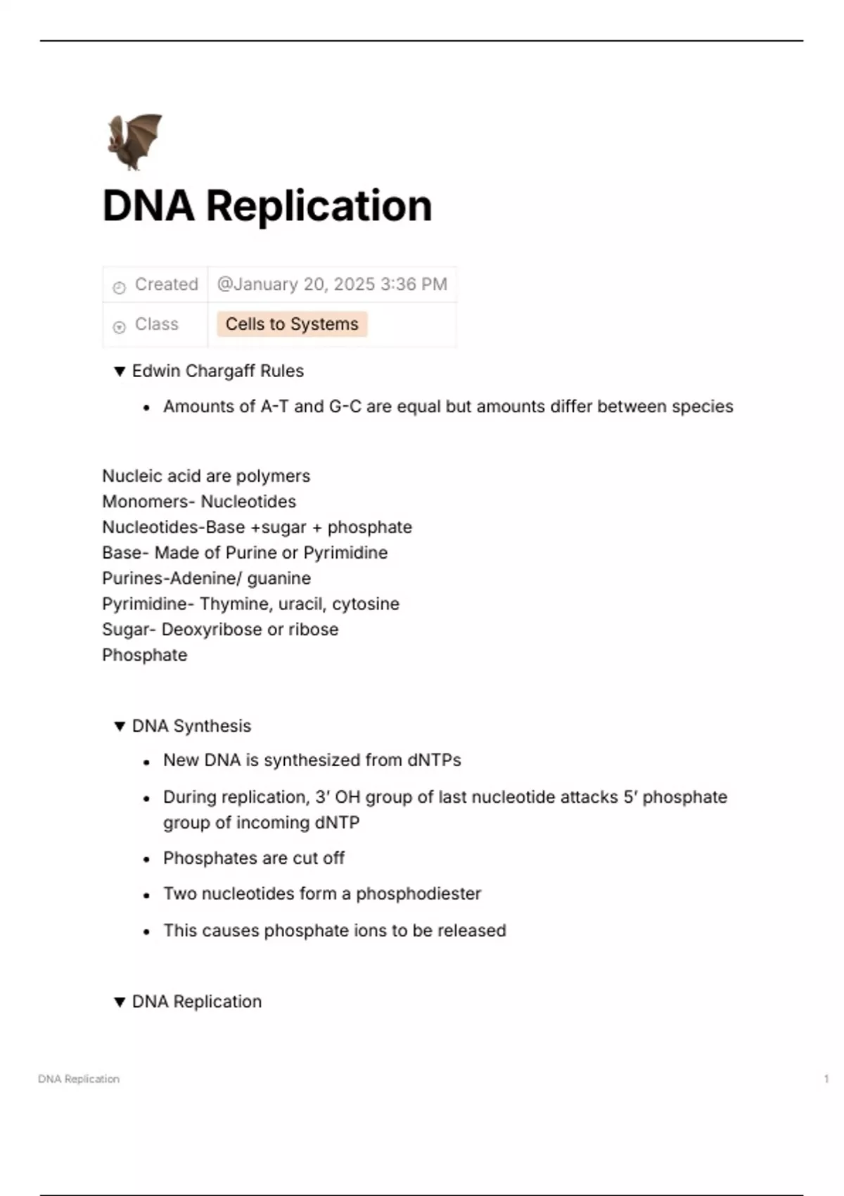 DNA Replication Notes