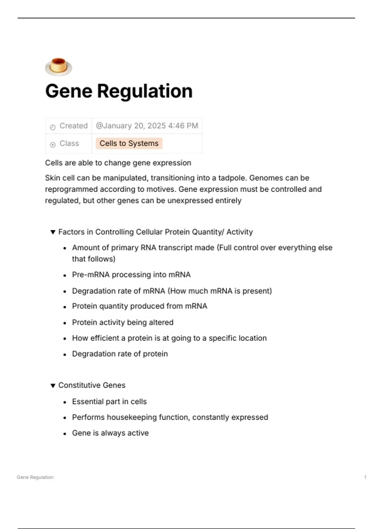 Gene Regulation Notes