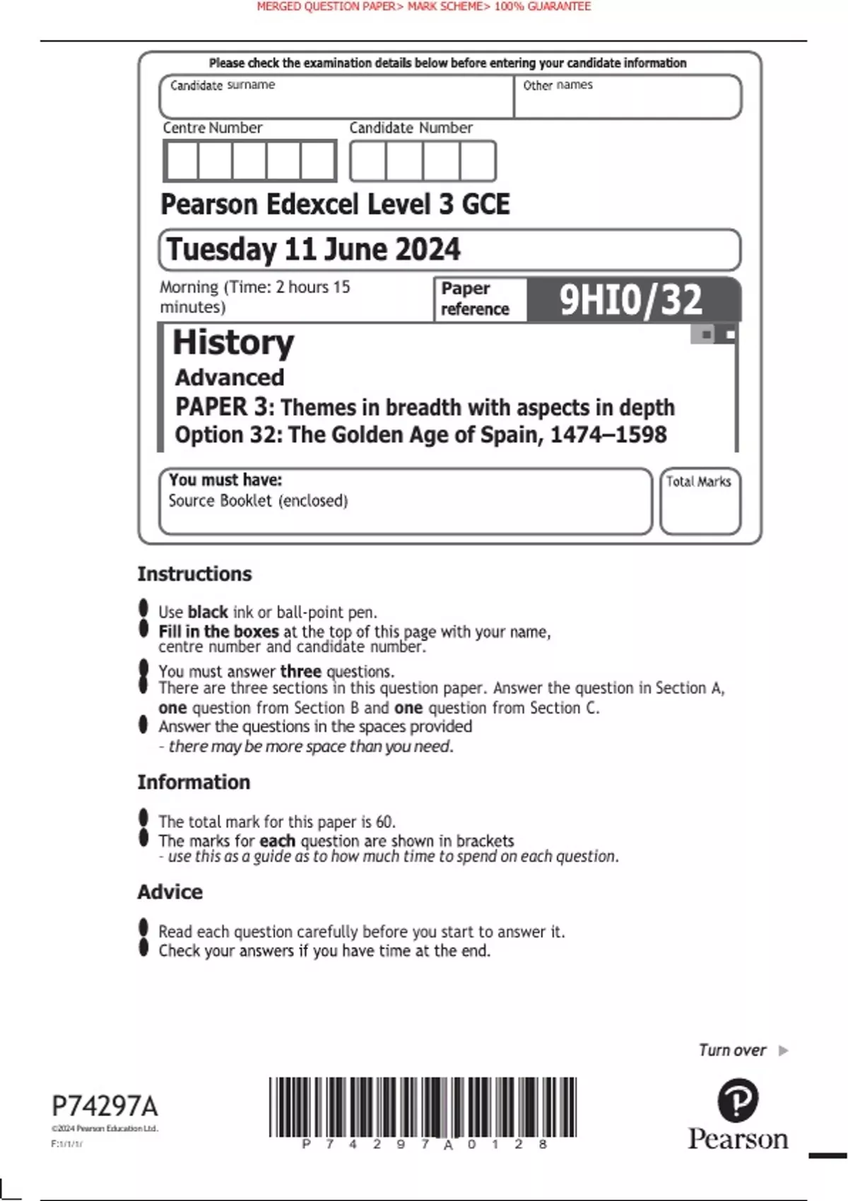 • The total mark for this paper is 60.