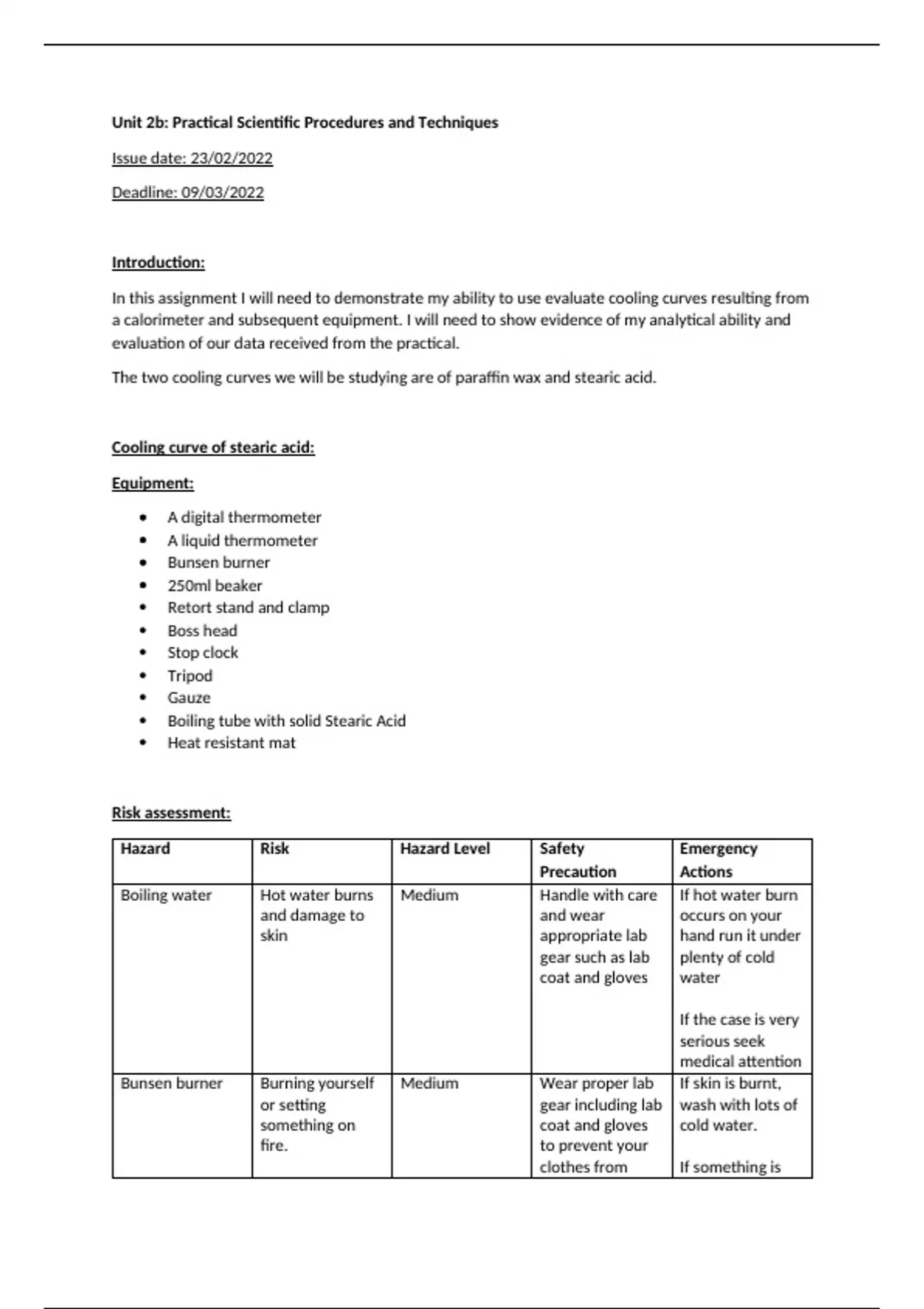 Unit 2b: Practical Scientific Procedures and Techniques - BTEC Applied Science