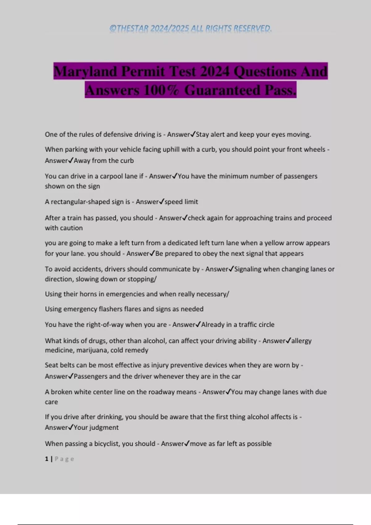 Maryland Permit Test 2024 Questions And