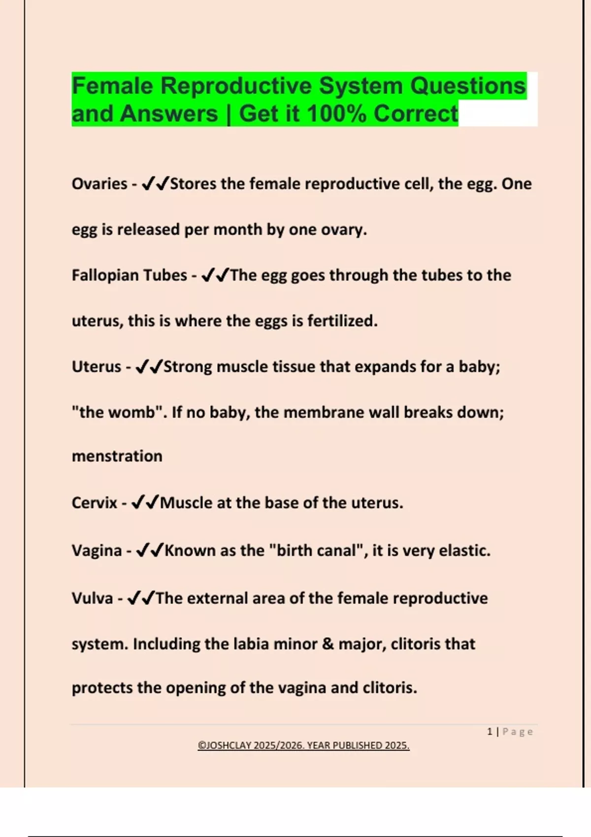 Vulva - ✔✔The external area of the female reproductive