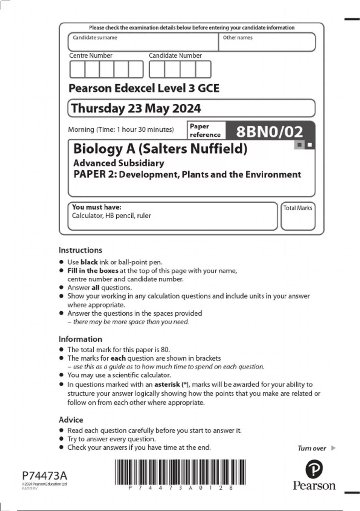 AS-Level EDEXCEL 2025 Biology A (Salters Nuffield) Paper 2