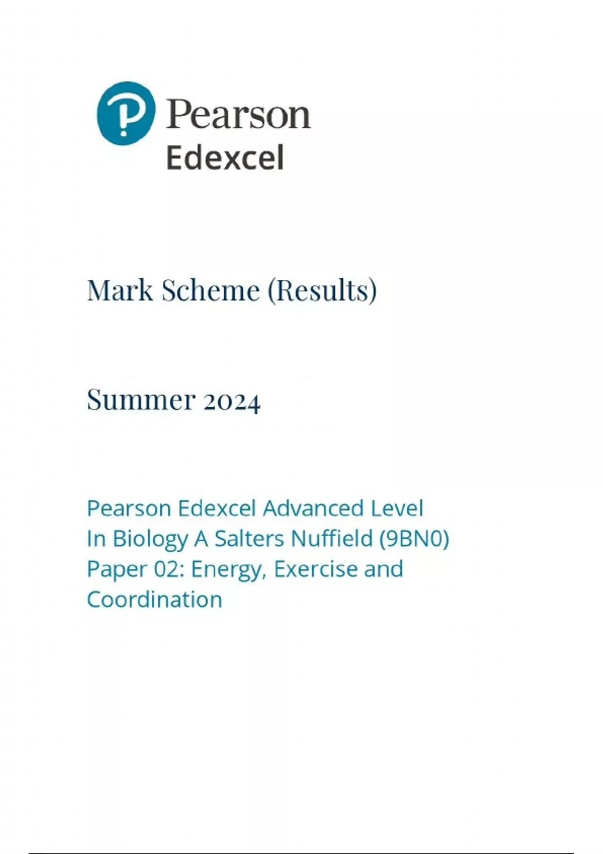 A-Level EDEXCEL 2025 Biology A (Salters Nuffield) Paper 2 Mark Scheme