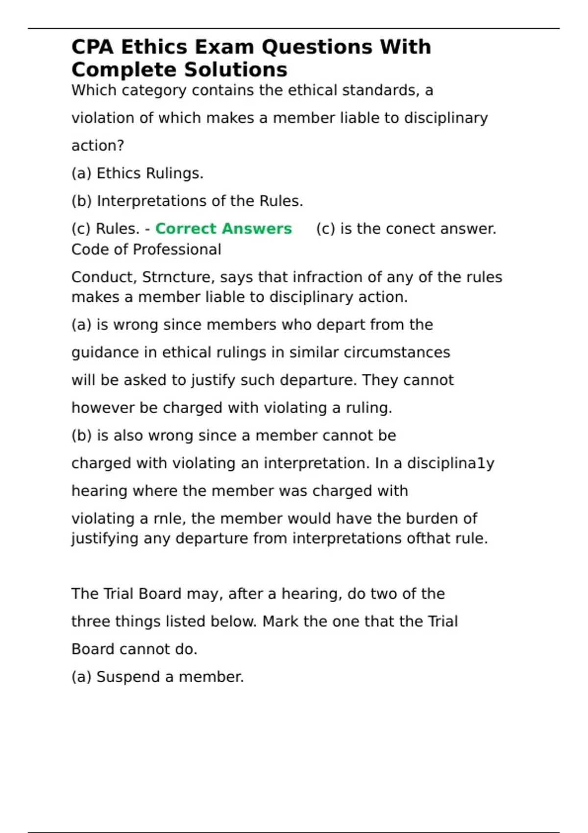 , CPA Ethics Exam Questions With
