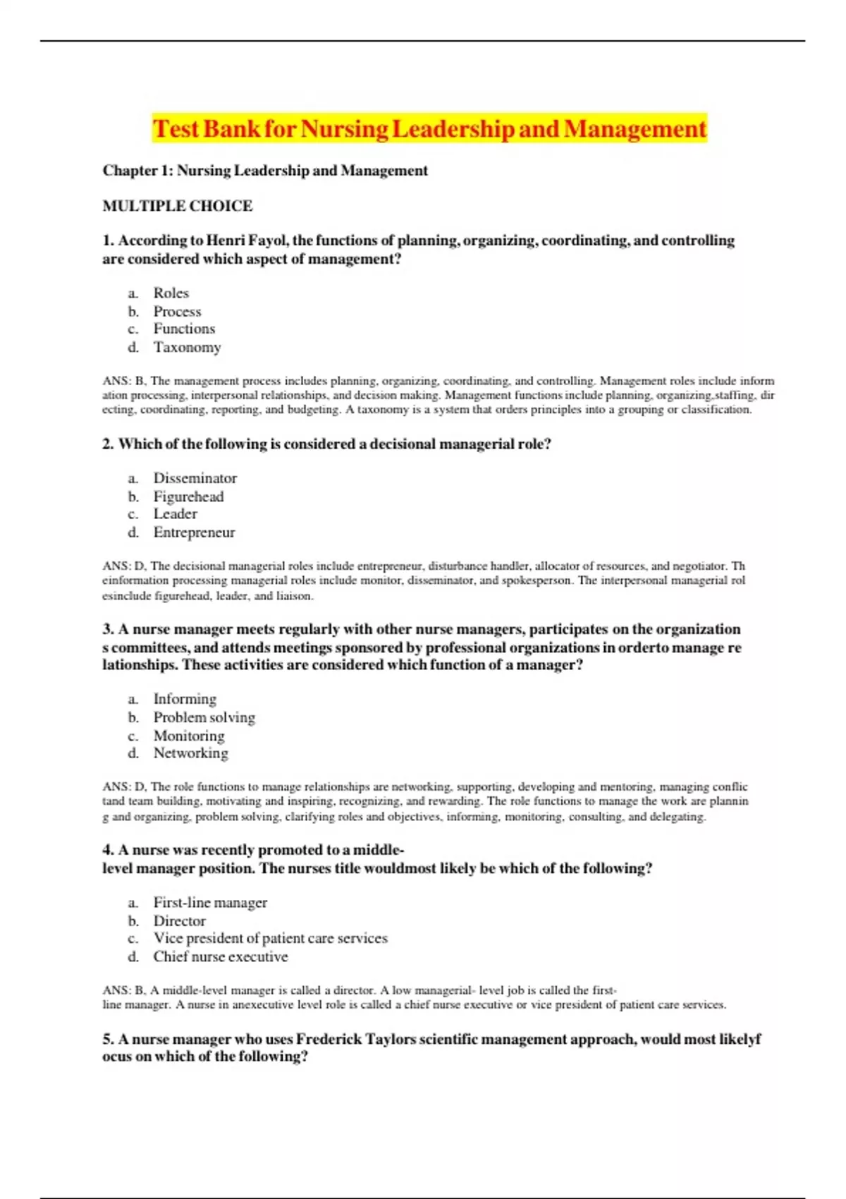 5. AvnursevmanagervwhovusesvFrederickvTaylorsvscientificvmanagementvapproach,vwouldvmostvlikelyvf