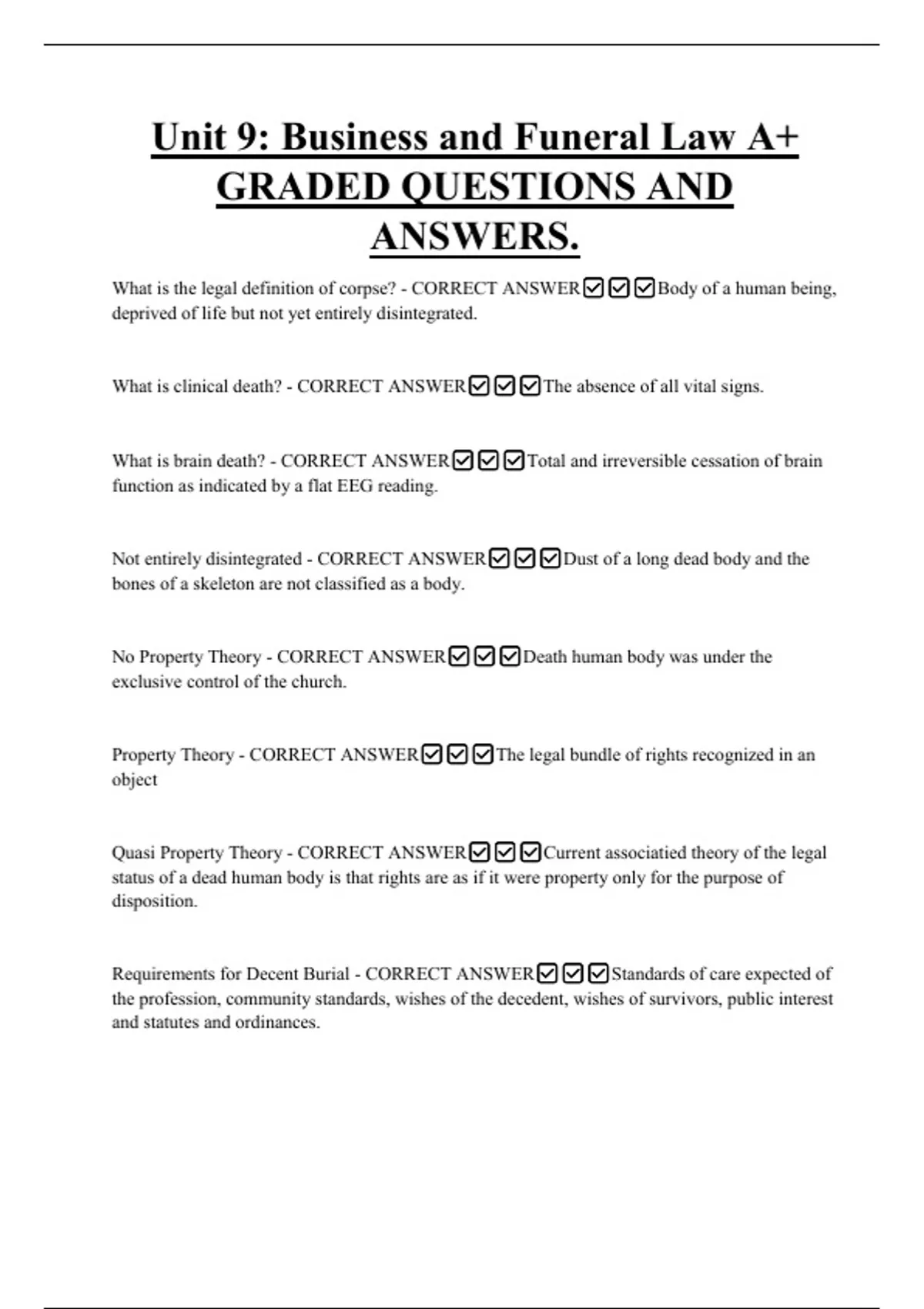 What is the legal definition of corpse? - CORRECT ANSWER✅✅✅Body of a human being,