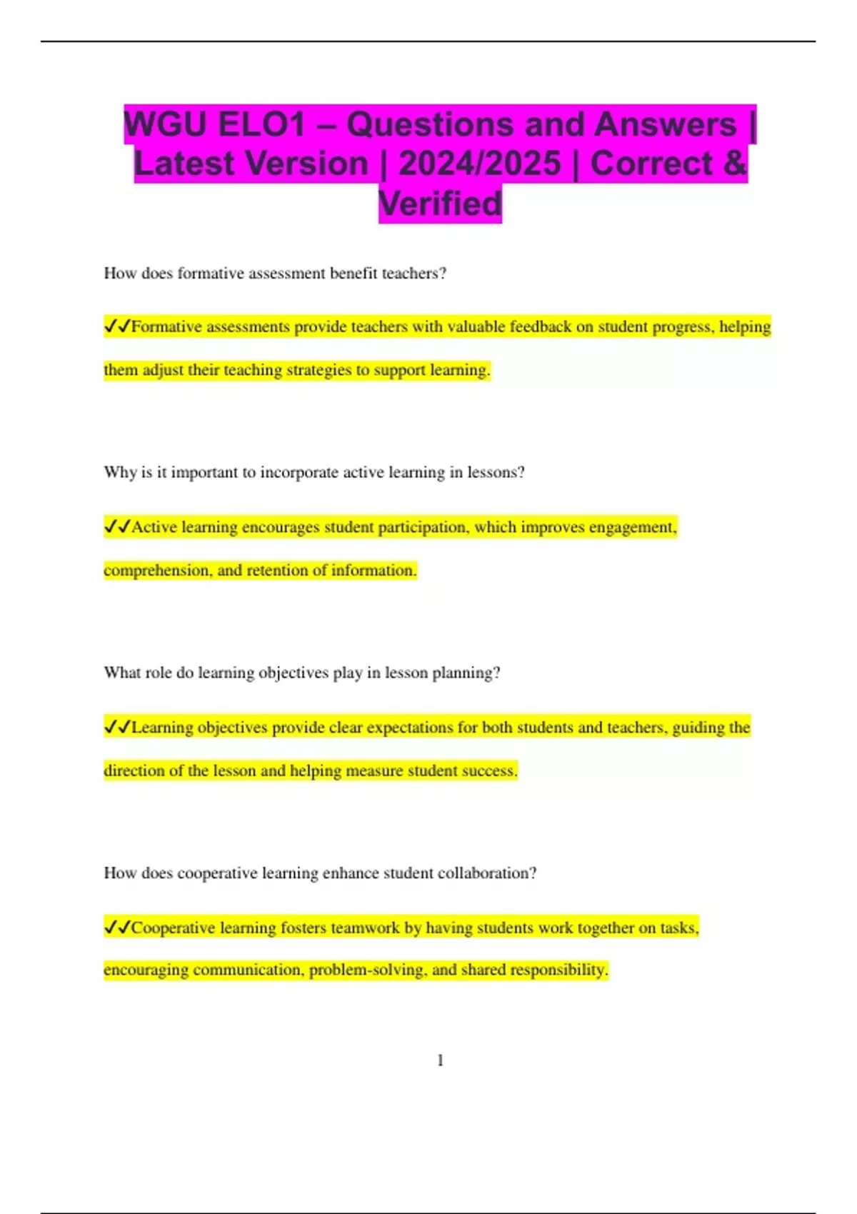 ✔✔Learning objectives provide clear expectations for both students and teachers, guiding the