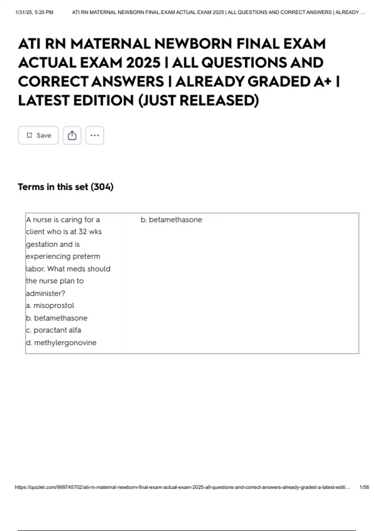 , 1/31/25, 5:20 PM ATI RN MATERNAL NEWBORN FINAL EXAM ACTUAL EXAM 2025 | ALL QUESTIONS AND CORRECT ANSWERS | ALREADY …