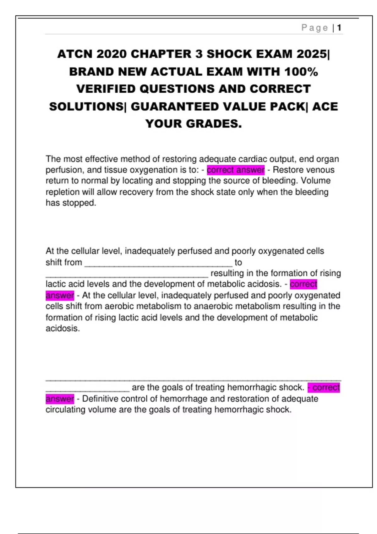 ATCN 2020 CHAPTER 3 SHOCK EXAM 2025|