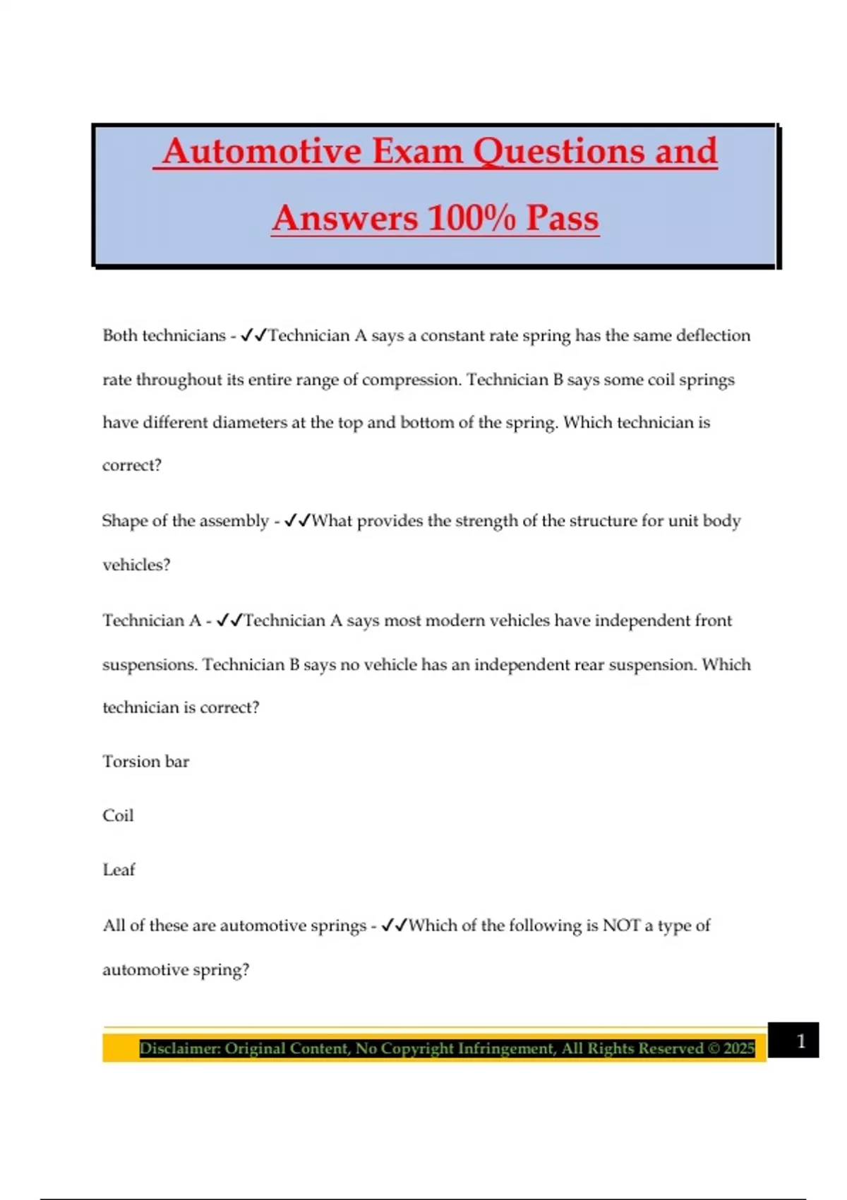 All of these are automotive springs - ✔✔Which of the following is NOT a type of