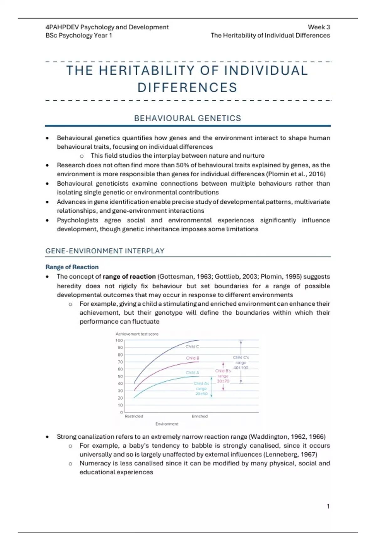 • The concept of range of reaction (Gottesman, 1963; Gottlieb, 2003; Plomin, 1995) suggests