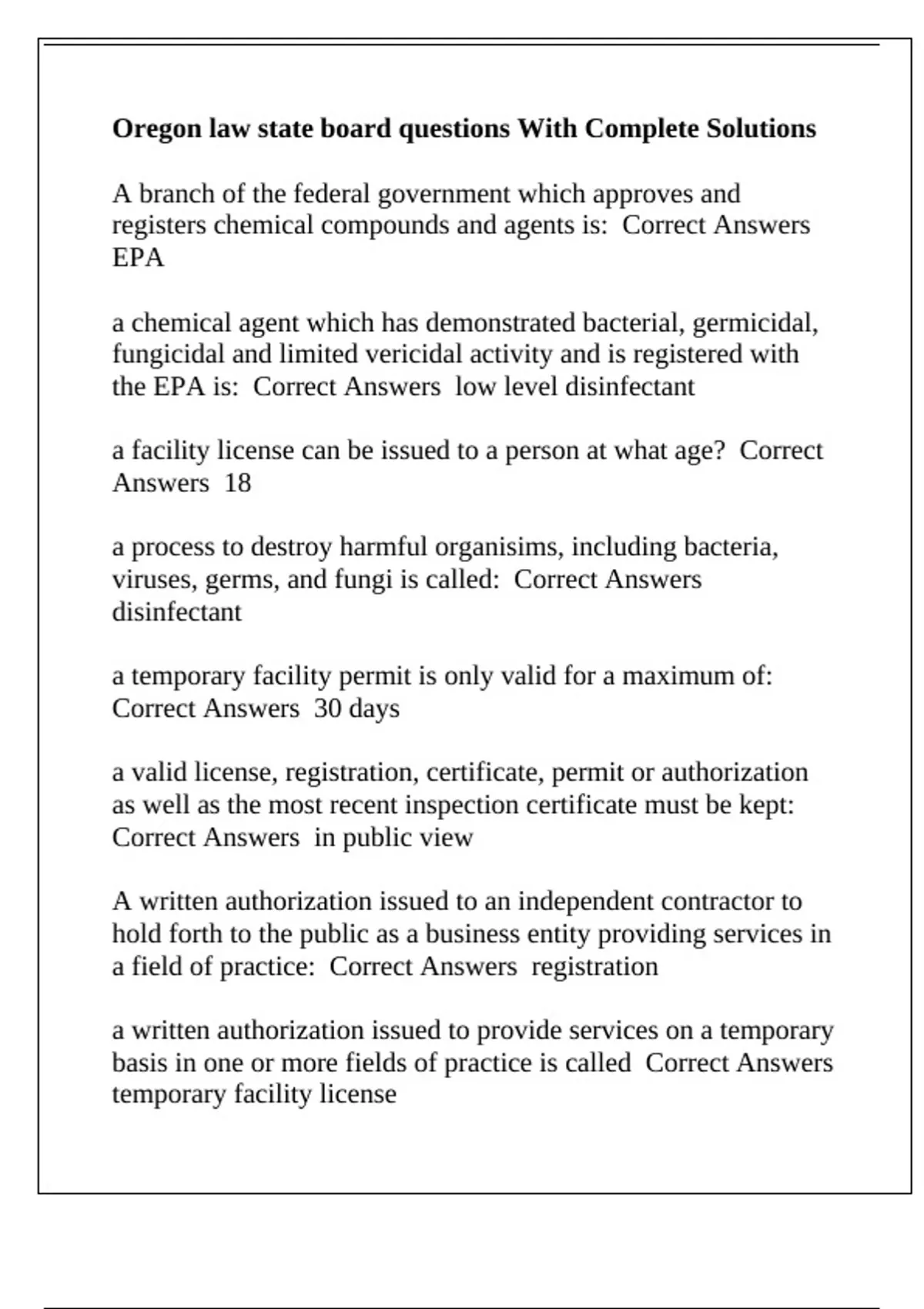 Oregon law state board questions With Complete Solutions