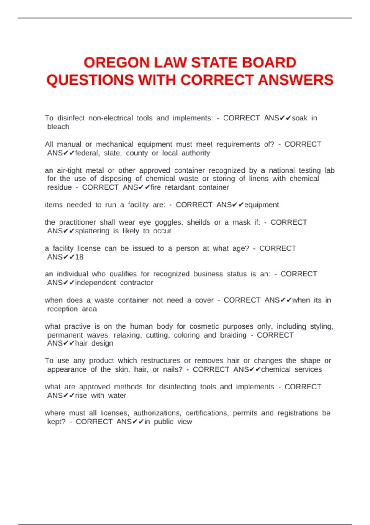 OREGON LAW STATE BOARD QUESTIONS WITH CORRECT ANSWERS