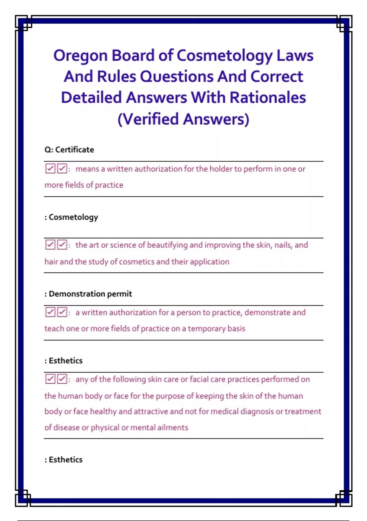 ☑☑: To qualify for certification as a practitioner of hair design, barbering,