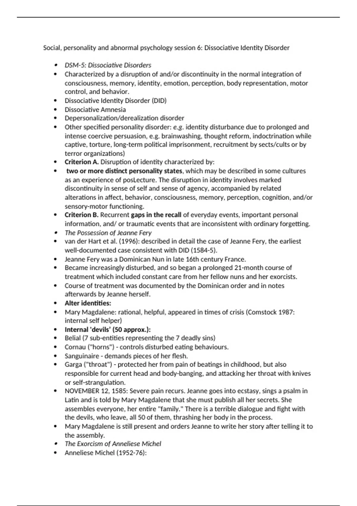 Social, personality and abnormal psychology session 6: Dissociative Identity Disorder